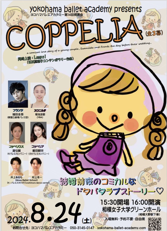 今年は豪華ゲストをお招きし、コッペリア全幕(ヨコハマバレエアカデミー版)をお届けいたします。