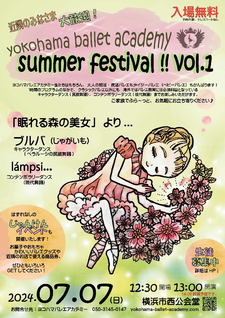 2024/7/7(日)横浜近辺のかたにもっとヨコハマバレエアカデミーのことを知っていただきたく、サマーフェスティバルを開催します!