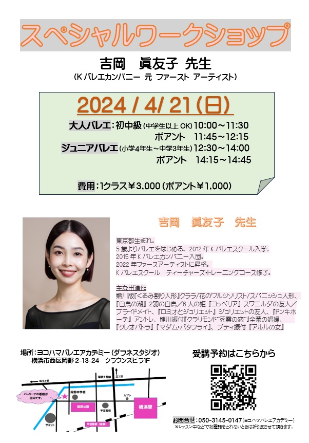 おととし発表会に出演していただいた吉岡眞友子先生のスペシャルワークショップを開催します。