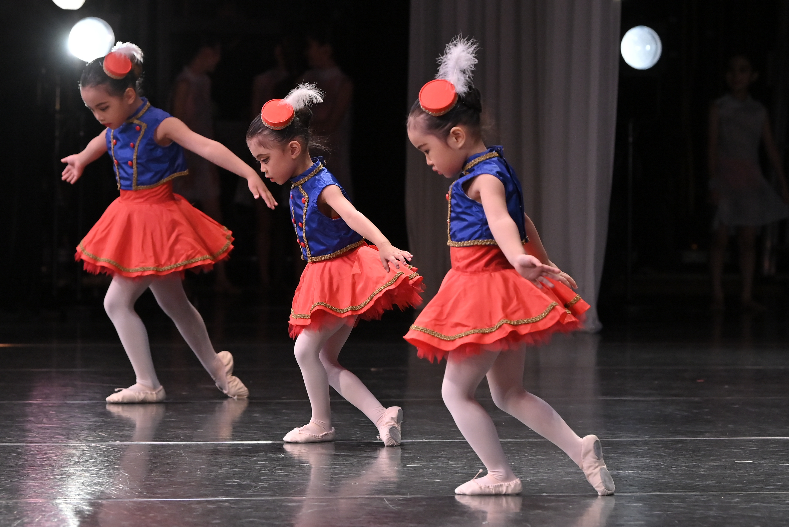 日々のレッスンももちろん大事ですが、舞台を通して子供たちが得るものが多いため、毎年発表会を行っております。プライマリーの参加は必須ではありませんが、みんなでひとつの作品をつくりあげていく、1年間頑張って成長した姿を見て頂く、練習で積み重ねた成果を舞台の上で披露し個々の自信につなげていく、との理由からできるだけの参加をお願いしております。不参加の場合でも、一緒に練習には参加します。