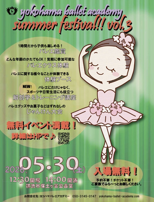 ヨコハマバレエアカデミーのことを近隣の方々に知って頂くイベント、ヨコハマバレエアカデミー サマーフェスティバル。